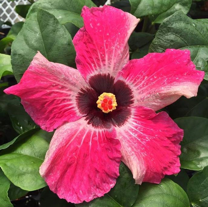 Plant DetailsFlower Color: bright pink with fading light pink stripes & deep red throat Height: Up to 8 feet Width: 4-6 feet Foliage Color: Green Habit: Compact, shrub-like Bloom Time: Everblooming Hardiness Zones: 9-11 |