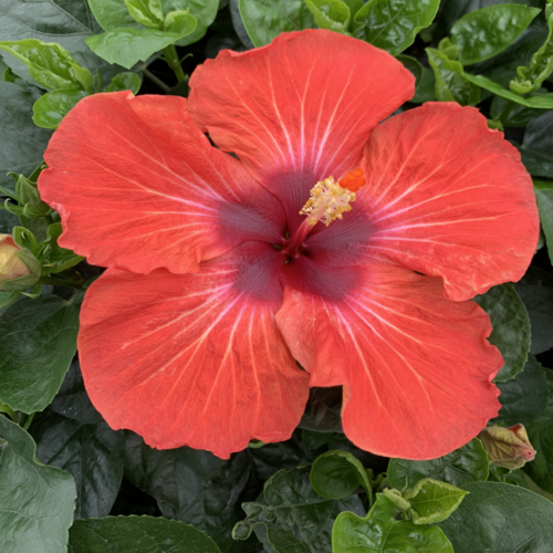 Plant Details Flower Color: red with White swirl in the middle & deep red throat. flower changes to a light orange color within the day. compact plant with plenty of blooms Height: Up to 8 feet Width: 4-6 feet Foliage Color: Green Habit: Compact, shrub-like Bloom Time: Everblooming Hardiness Zones: 9-11 |
