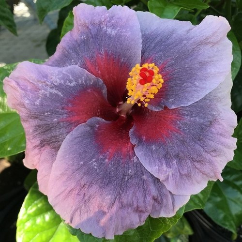 Plant DetailsFlower Color: purple gray with lavender edges & deep red throat Height: Up to 8 feet Width: 4-6 feet Foliage Color: Green Habit: Compact, shrub-like Bloom Time: Everblooming Hardiness Zones: 9-11 |