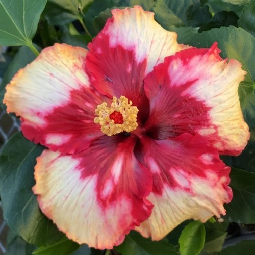 Plant DetailsFlower Color: red with white speckles Height: Up to 8 feet Width: 4-6 feet Foliage Color: Green Habit: Compact, shrub-like Bloom Time: Everblooming Hardiness Zones: 9-11 |