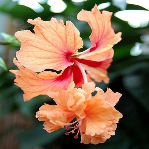 Plant DetailsFlower Color: Orange coral flower with pink veins. Red Pinkish in the middle that also has a flower that is stuck on the end of a long narrow stalk creating a 'poodled' effect. Height: Up to 8 feet Width: 4-6 feet Foliage Color: Green Habit: Compact, shrub-like Bloom Time: Everblooming Hardiness Zones: 9-11 |