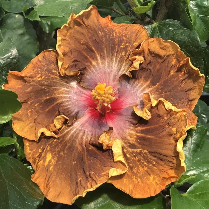 Plant DetailsFlower Color: brown with orange yellowish with pink throat Height: Up to 8 feet Width: 4-6 feet Foliage Color: Green Habit: Compact, shrub-like Bloom Time: Everblooming Hardiness Zones: 9-11 |