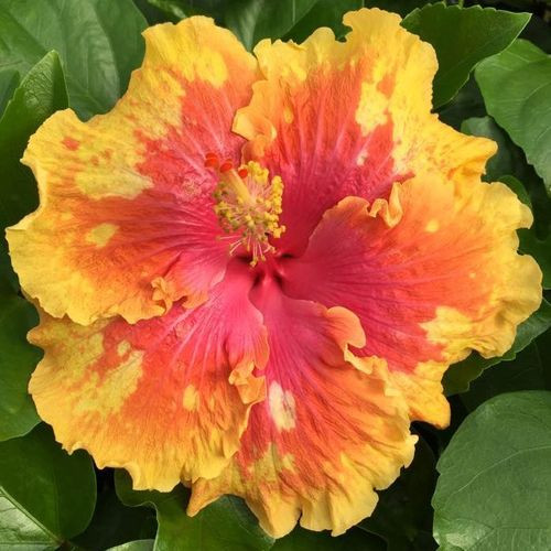 Plant DetailsFlower Color: orange, pink & yellow with white speckles & pink throat Height: Up to 8 feet Width: 4-6 feet Foliage Color: Green Habit: Compact, shrub-like Bloom Time: Everblooming Hardiness Zones: 9-11 |
